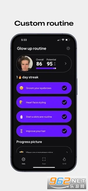 《Umax》是一款面向男性用户的颜值打分App,结合AI与美学,分析面部特征并提供个性化提升建议。上传素颜照即可获得颜值总分和潜力分,针对男子气概、皮肤状态、下颌线等细分要素进行评估,制定专属改造计划,助你颜值飞升。