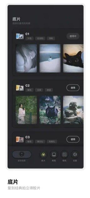 3、复古相机,精选胶片滤镜,还原胶片色彩,海报拼图,自由布局,打造专属大片。