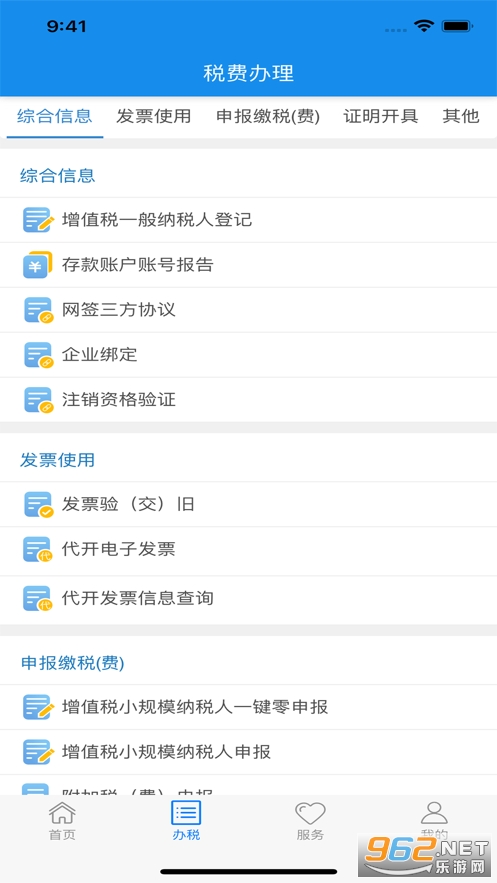 《楚税通苹果版app》是国家税务总局湖北省税务局为方便全省人民办理网上缴纳税务事项特此推出的全新办税缴费服务移动APP,该软件主要界面使用操作有首页”“办税”“服务”“我的”四大模块,其中还支持申报缴纳、发票的代开办理、个人及企业财税问题在线沟通等方面。