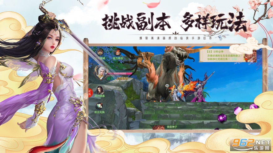 3、寻找神仙漫步人间仙境,你可以冒险抢劫宝藏和杀死恶魔,全屏特效闪耀震撼。