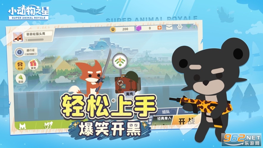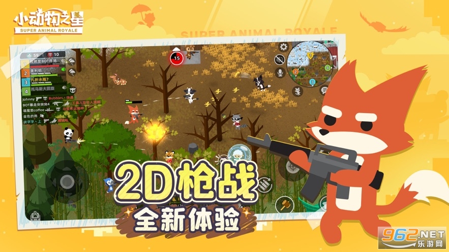 很轻松的大逃杀游戏,以动物之间拿枪挣得第一,画风很棒适合小朋友们来玩。