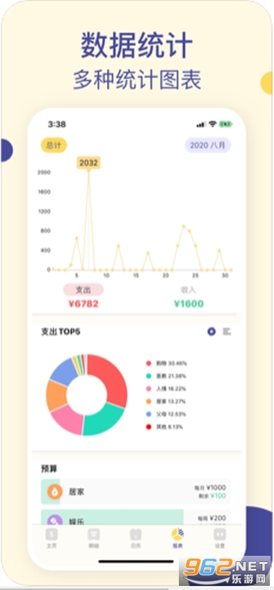 统计图表:趋势图,收支构成图等,分析您的财务状况