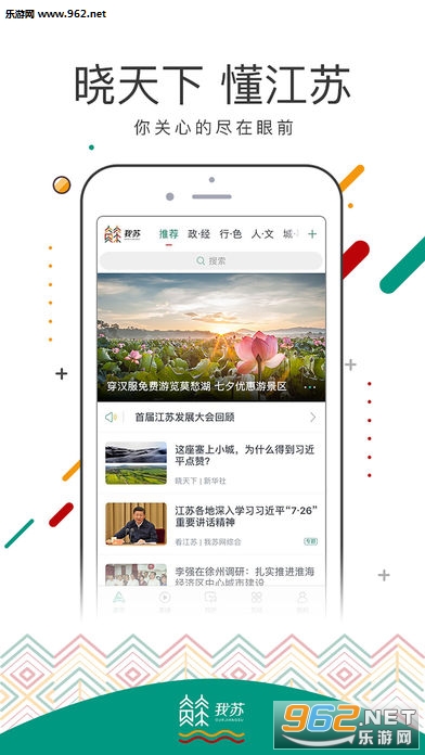 国内外时事要闻,江苏政策谋划、发展动态,十三城热门城事——这里呈现最具价值的新鲜资讯。秀美风景、地道美食、诗文艺趣——这里收藏日常生活的点滴诗意;杰出乡贤、创富领袖、蓬勃青年、外国友人——这里汇聚鲜活动人的江苏故事。