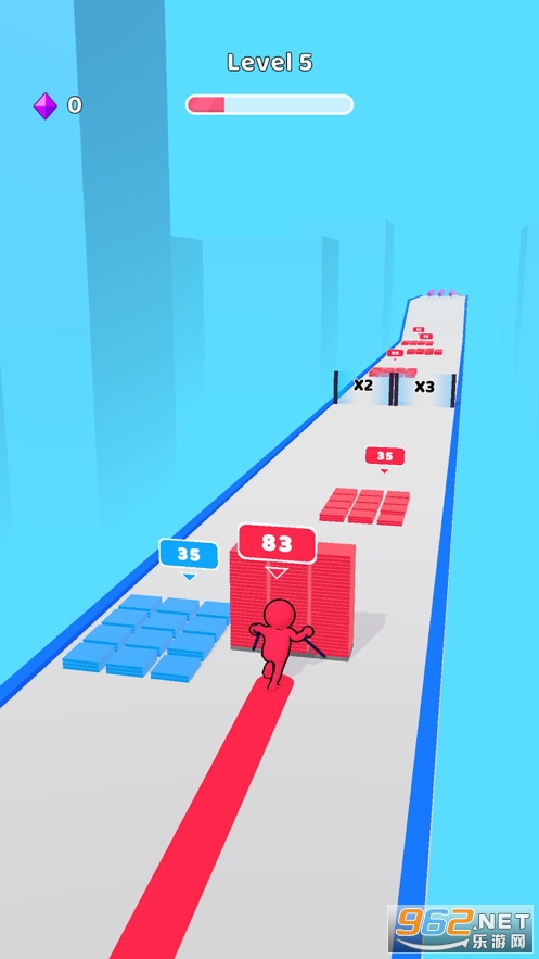 趣味的闯关游戏,游戏玩法简单,推动一些方块前行,收集方块,增加自己方块的数量和高度,通过一些大的数字让自己的方块变得更多,到达终点获得更好的奖励,喜欢的朋友可以下载试试。