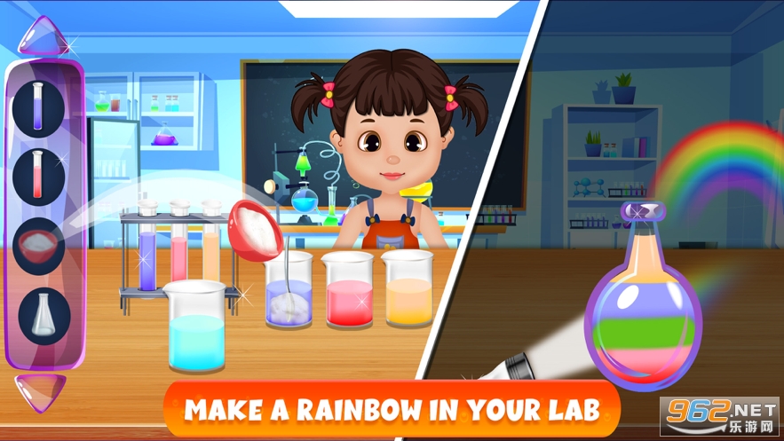在这个化学实验室中,您可以进行其他实验,例如您可以在袖珍实验室中收集不同的颜色并制作彩虹并成为专业科学家,但请记住,您必须在实验室老师的监督下进行所有实验。