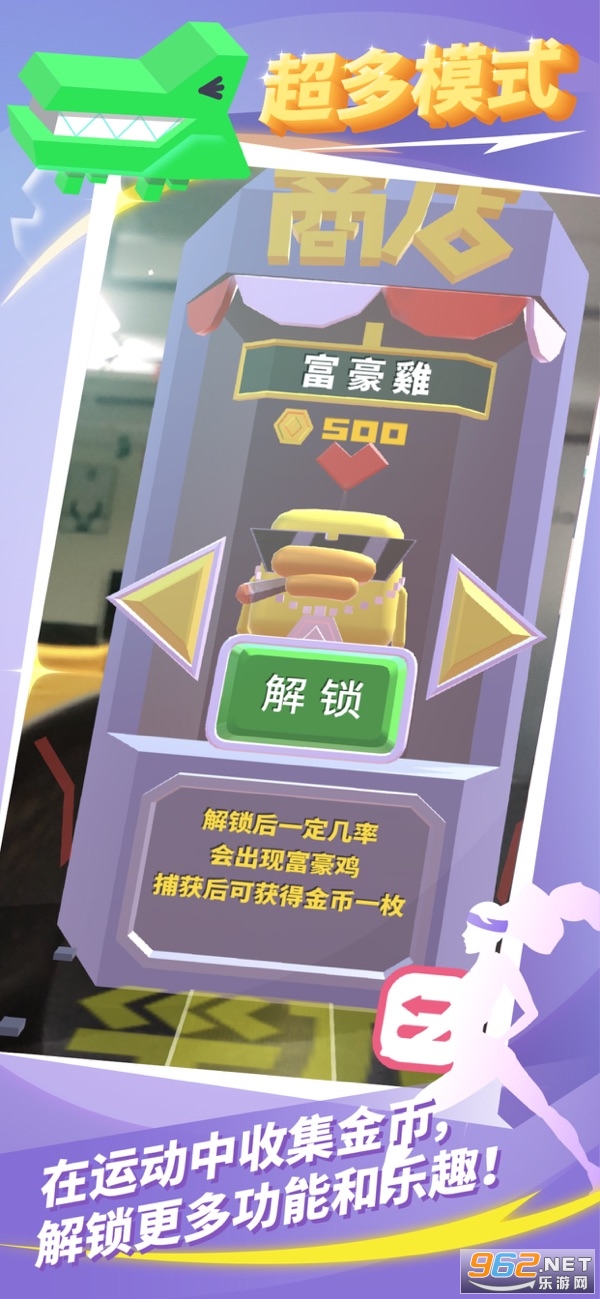 非常有趣的一款以运动为核心,结合了ar互动元素的冒险休闲游戏,开始你的跑酷之旅,躲避各种昂障碍,轻松小号卡路里,游戏会帮你记录消耗的卡路里数哦!