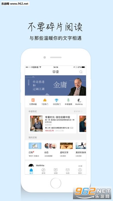 《中读苹果ios版》这是由《三联生活周刊》打造的手机客户端。在这里,你能够阅读《三联生活周刊》上的优秀新闻报道、最新文章,以及《骨董时光·谁在收藏中国》、《和小贝一起读外刊》等特色专栏。在这里,你还能够和你喜欢的作者在线互动。