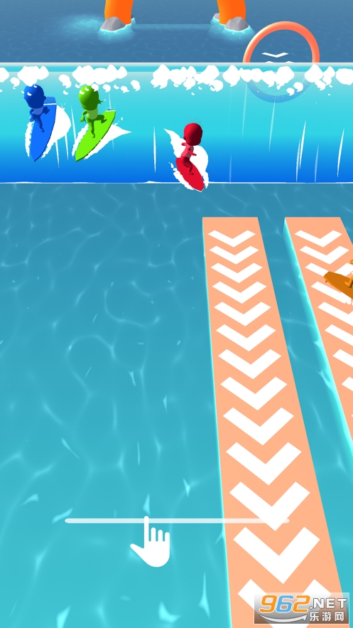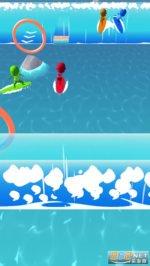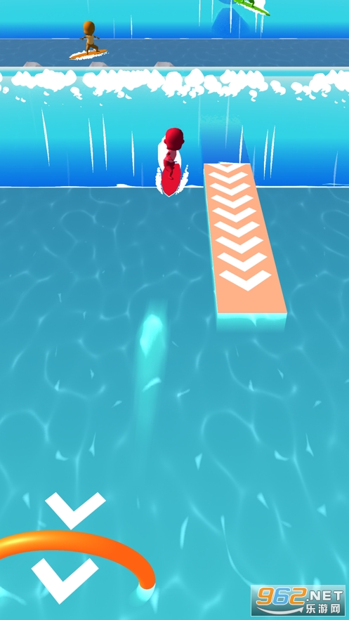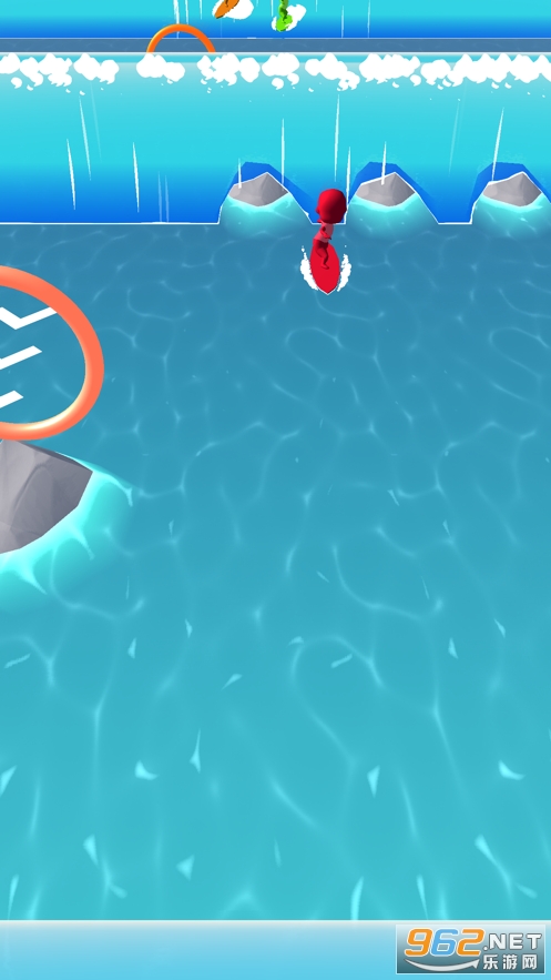 3、赛道的右边有着界限范围,玩家不能超出这个范围,右边这打海浪,玩家用道具可以在上面加速前行。
