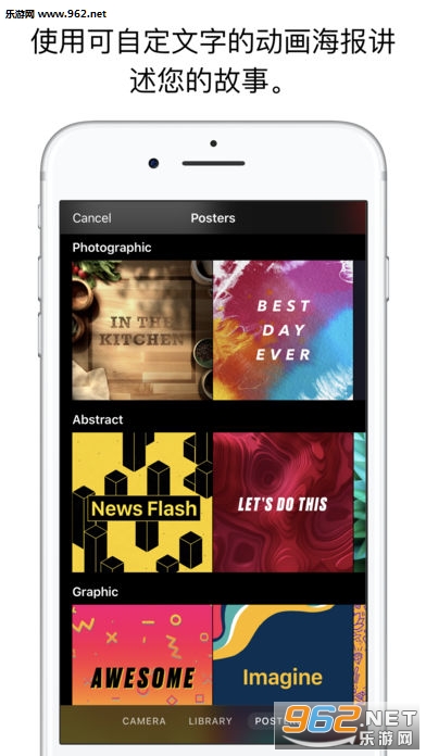使用含动态背景和自定文本的全屏海报,助您更好地讲故事