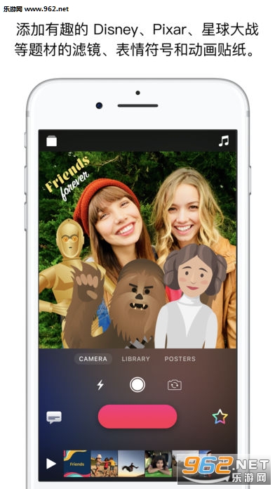 选择来自“星球大战”、Disney、Pixar 中的几十个动画贴纸