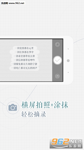 文字识别神器ios手机版是一款可以把纸面文字马上电子化!拍照+涂抹,马上就能记录书中的精彩句子!对于喜爱看书的用户来说非常不错的设计,边看书边写感悟,随时随地还能分享给身边的小伙伴们!感兴趣的可以下载试试!