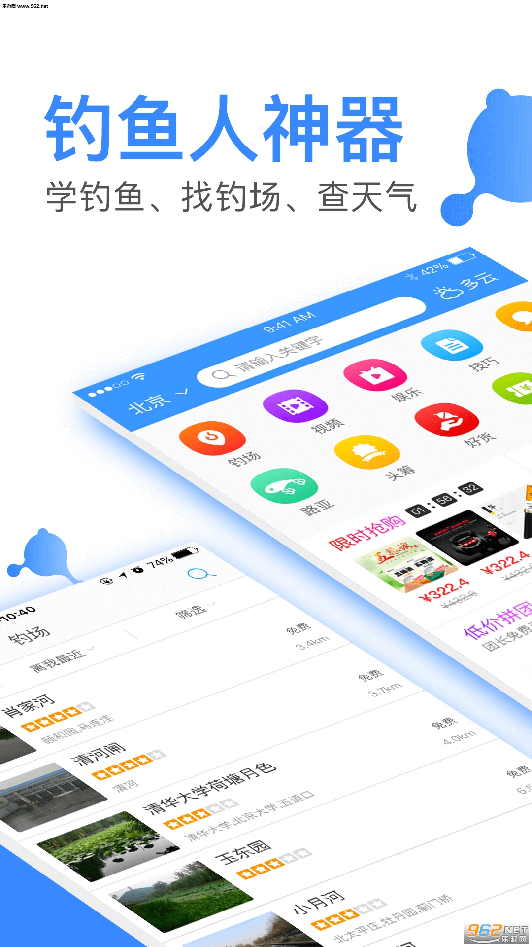 找钓场、渔具店:覆盖全国581个城市,查找附近的钓点和渔具店,一键导航;