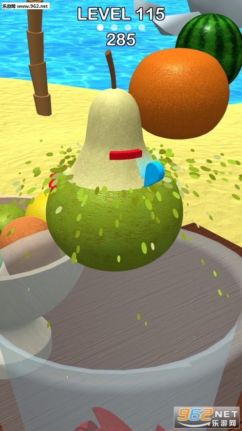 2、利用不同的道具将水果完美的削皮,操作非常的有趣和解压;