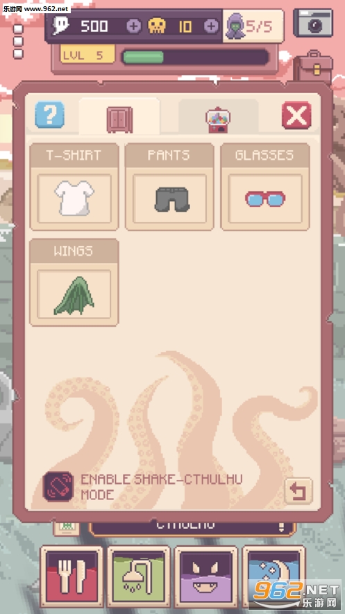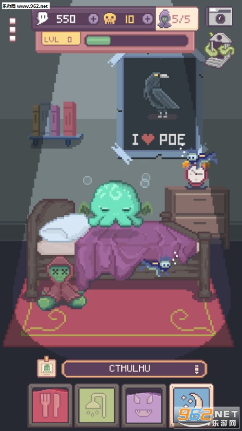 《克苏鲁宠物2》是一款像素卡通风格的宠物养成游戏,是的我们要养成的是一只克苏鲁,这只类似于大章鱼的生物。游戏在上一作的基础上增加了许多全新的内容,丰富的养成项目,多种装饰,赶快来饲养属于你的克苏鲁吧!