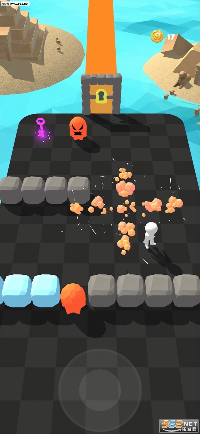 3、你需要去不断的炸毁其中的方块,让自己可以成功的来到宝库的位置吧;