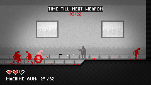 《死亡小屋》是个被困在小屋里的射击僵尸游戏,游戏的节奏比较快,捡到武器就会进入获得下一个武器的计时,每次计时都是15秒,还需要注意的是,有的武器虽然威力大,但后劲也大,会把你往后推很远,要小心不要被自己的武器给害死了。