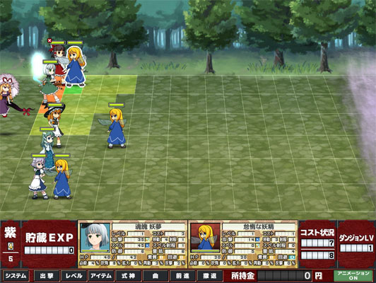 作为战棋类游戏,走格子是必不可少的。《東方巫行跡》的优点在于移动后如果反悔了可以点击“移動”来撤销刚才的决定,出击选择时的分组令玩家更好得分配自己的战斗力。战斗胜利时有可能获得掉落的装备,装备上可以增加自己5%的攻击力或防御力。为了让贮藏经验值能更好得利用,游戏中战斗失败回归本部疗养时,玩家可以使用贮藏经验值来实现“买活”操作