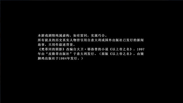《梵蒂冈的阴影第二章:愤怒》作为梵蒂冈系列四部曲的第二作,游戏的画面继承前作的2.5D和3D相融合的风格,别有一番特色。剧情上也做好了承上启下的特点,错综复杂的剧情融合了百年历史的阴谋和现代行动的冲突,人物刻画的也很细致,富有挑战性的谜题和紧张连贯的剧情,作为一个冒险解谜游戏来说,还是相当值得一玩的。