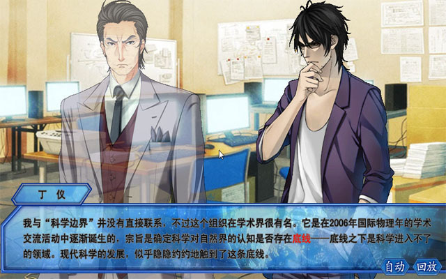 游戏有3个故事,每一部均有4个结局,分为两个BE(差结局),一个TE(真正结局)和一个GE(好结局)。只有打出TE和GE才可以进入下一部。不过不必担心,只要能正确推理出当前谜题的答案就不会触发BE,而且推理过程中有多次机会,不会出现一个选项点错就GAME OVER的情况。至于隐藏的GE,就要看大家是否能触发相关支线了。