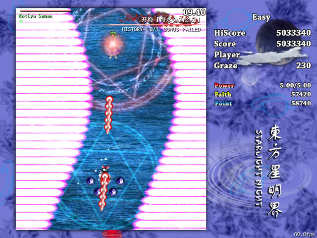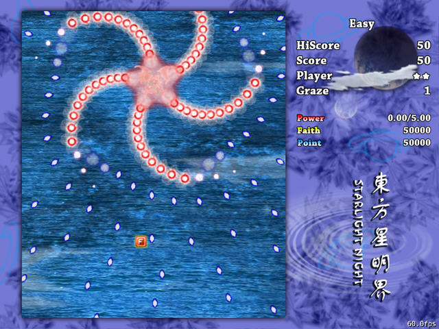 一款仿照东方系列制作的弹幕游戏,秉承了东方系列的华丽攻击,但是子弹速度比东方系列要快一些,所以难度上也比平时的东方要高一些。