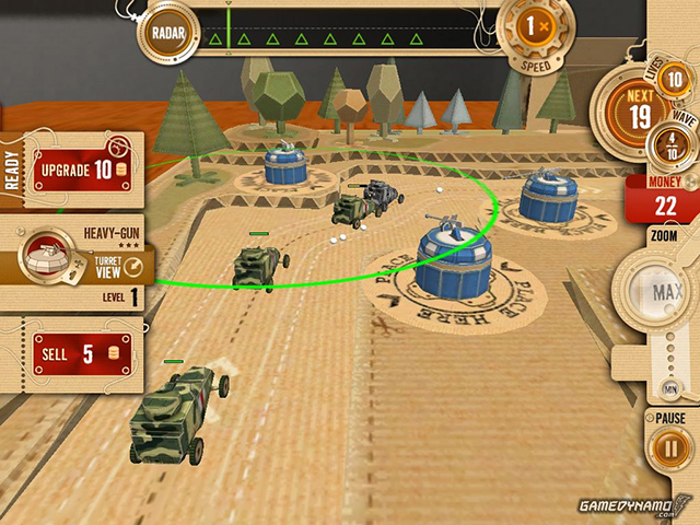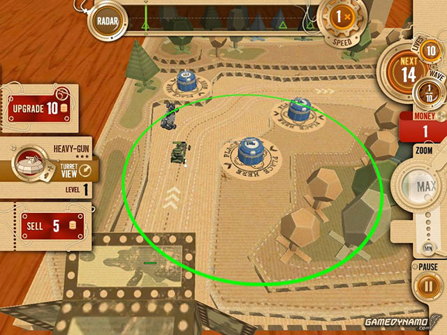 《桌面塔防》是个很典型的塔防游戏,不过以桌面为平台以及完全3D可调节的视角,让这个游戏非常有自己的特色,这点来说与《玩具士兵》很相似。游戏的场景并不算精致,不过却很好的模拟了桌面游戏该有的玩具般的效果,别有一番趣味。游戏的玩法上则与一般的塔防游戏比较类似了,不过亮点就在于其可调节的视角,能让玩家有一种与其它塔防游戏所没有的非一般的视觉感受。游戏的难度可不低,新手玩家就先在普通模式里好好练把手吧。