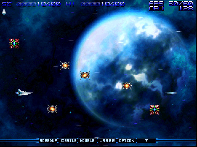 这款游戏算的上是FC的经典飞行射击游戏《沙曼罗蛇》的复刻版,游戏基本沿用了FC中的各种玩法,包括升级的模式等等,手感还不错,很值得一试。