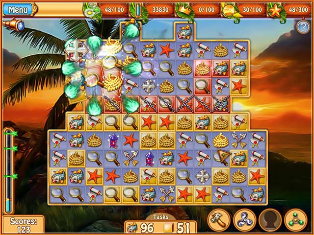《皇家之岛2:探寻新大陆》的游戏玩法上属于典型的益智消除类游戏,游戏的题材则以一个老国王寻找儿子而出海踏上旅程,游戏的剧情很巧妙的穿插到了游戏的内容当中,包括灾难和BOSS。游戏有两种难度,时间限制和非时间限制,在费非时间限制的模式下,游戏几乎没有难度,一直消除即可,不过有大量的地方需要多次重复消除,比较浪费时间,作为一个打发时间的游戏是非常不错的选择。