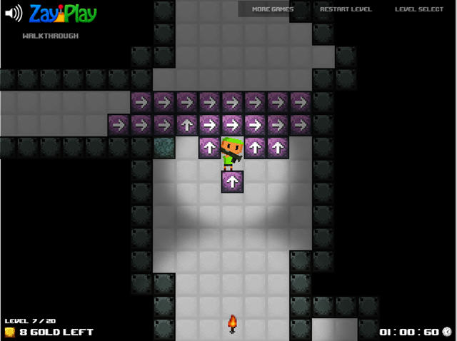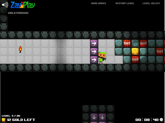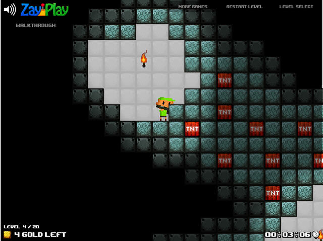 这是一个以破坏为主题,稍带解谜性质的横版游戏,玩家所扮演的主角手持火箭筒,在地下的矿洞里开始一番狂轰乱炸,收集所有的金矿来完成任务。