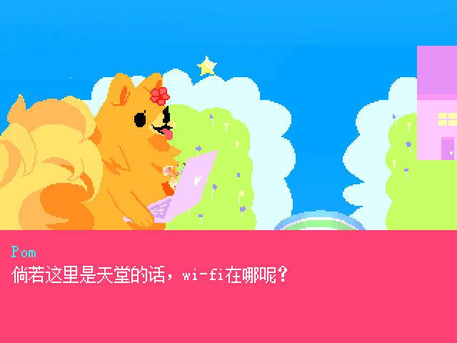 游戏的解谜要素比较重,玩家要在天堂与其他的各种狗狗对话来寻找线索,另外场景中还隐藏了一些独特的可触发剧情,比如让你了解一下狗狗的神长什么样。