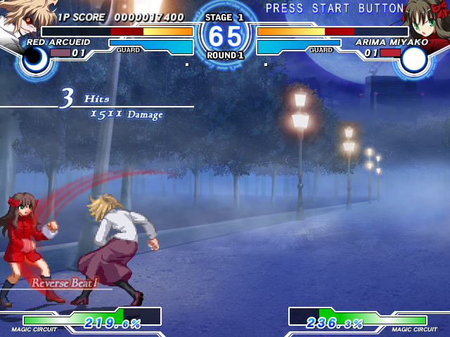 月姬格斗是一款相当不错的格斗游戏和fate系列的格斗游戏相比,在平衡性和可玩性上都有很大优势,目前该游戏已经出了许多版本,每年在日本和中国还有许多围绕此游戏的格斗比赛(如红白赛)而MBAACC(也就是最新版的月姬格斗游戏)