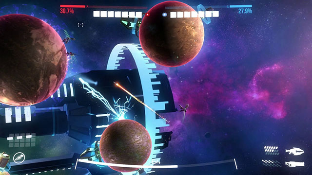 《轨道装备》是一个多人的竞技游戏,游戏必须要有两个以上的玩家,创建房间加入房间才可以进行。游戏的战场设定在太空,画面非常的鲜艳绚丽,看起来非常漂亮。战斗方式也很特殊,打破了传统的战斗方式,选择的装备一切都要以天体之间的引力来运行,与大多数动作游戏一样,刚开始上手可能会花点时间,不过渐渐熟悉之后,就可以和基友们一起享受在太空中的竞技爽快的感觉里。