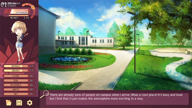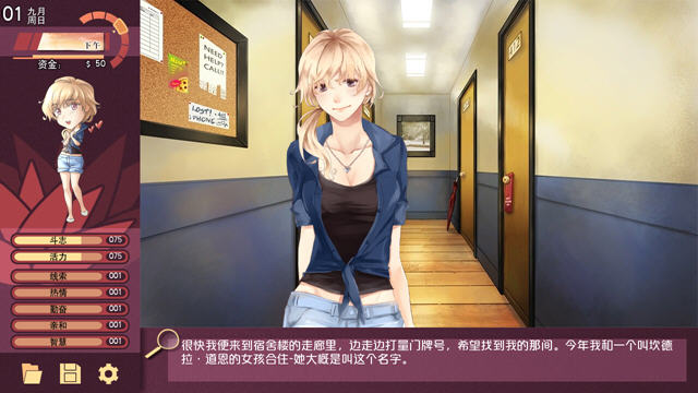 在这个游戏中你能够体会大学生活,找一份兼职工作来挣钱,探索不同的场景与活动,当然,可以遇见很多有趣的人