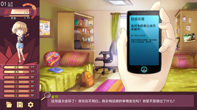 刚刚进入大学的妮可即将开始她的新冒险,她发现学校里有个失踪的女孩!也许她的大学生活并不会像她想像中的那样。。。妮可需要在约会的同时解开谜题。。。也许失踪案件的罪魁祸首就是约会对象!