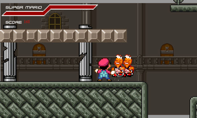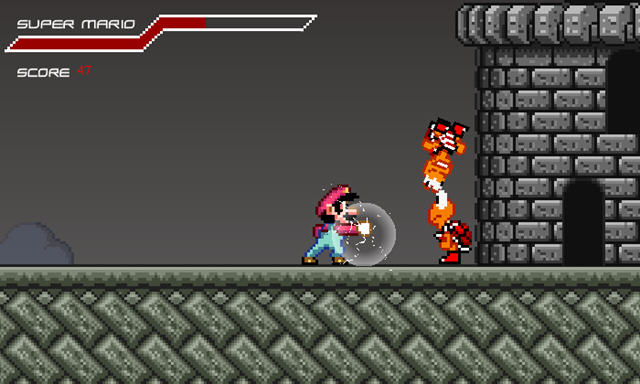 比较有创意的马里奥同人,将横版的马里奥跑酷改变成一个格斗游戏了。