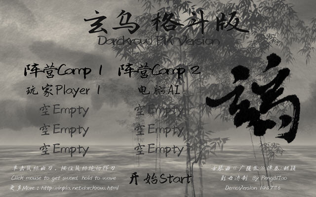 一款三维水墨武侠动作游戏。暂时版本只有格斗部分,剧情尚未加入。时代背景设定在明朝末年,游戏中武器包括单双手雁翎刀、藤牌、和弓箭。戏追求的是自由操作的杀戮,全物理碰撞伤害判断,力求达到完全操作的同时无招胜有招。所以不同于其他游戏的是,这款游戏并没有任何招式和具体动作,所有动作细节都需要玩家实时操作输入。