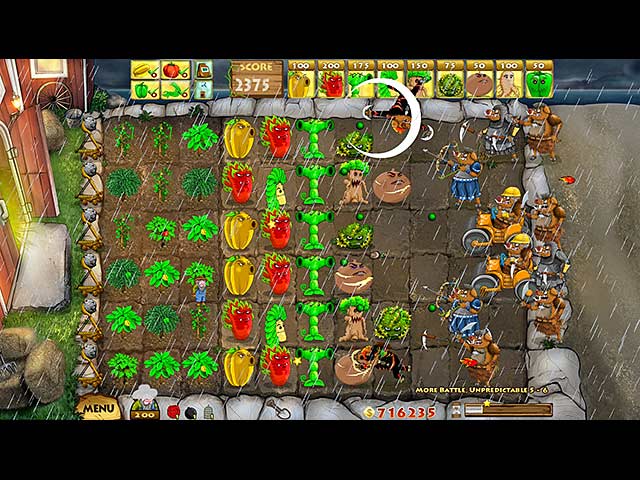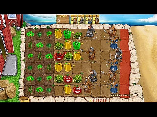 你在山脚下美丽的牧场,生产着丰富的水果和蔬菜。有一天,邪恶的野猪在BOSS的带领下攻击你的牧场,想抢走你所有的牲畜,他们有着不同的类型和技能,使得他们非常的危险,收集使用你的植物武器保卫好你的农场。