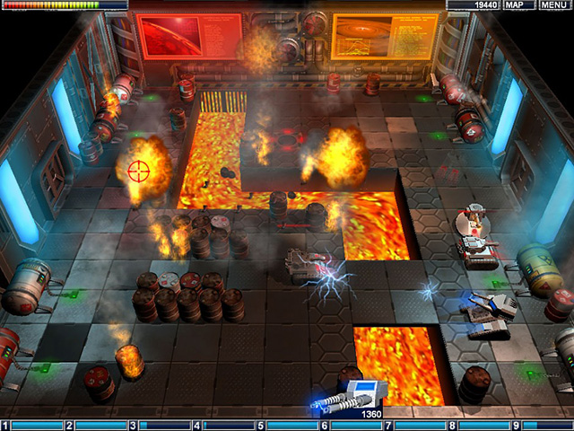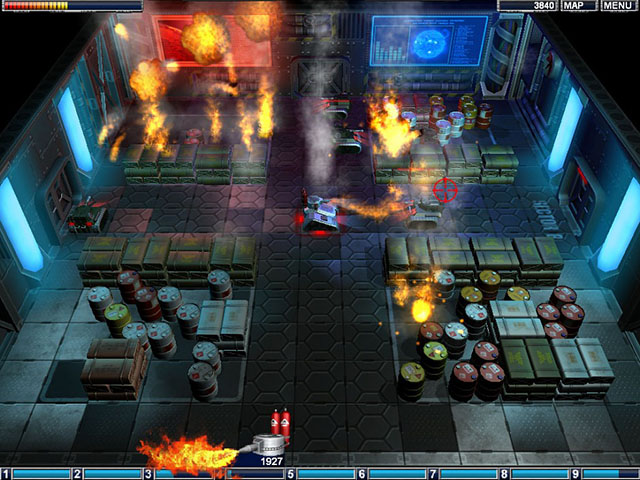 驾驶你的坦克探索敌人空间站,并在你前进的路上摧毁各种敌人的部队。每当你成功完成一个关卡时,你就有可能得到更加强大的武器和新的设备,努力去消灭全部的敌人吧。