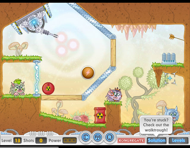 一款可爱型的技巧益智游戏,玩家要发射激光来攻击关卡中的小怪物,当全部的小怪物都消灭就可以过关。