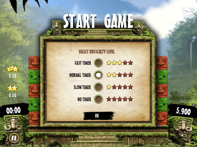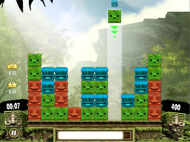 《阿兹特克冒险》是个三消配对游戏,不过它的消除不是一般的移动配对消除,而是从上面打下来进行配对消除的,游戏难度倒是很简单,不过想要能一次消除大量,就需要先好好观察,去发现其中的规律了,建议在无时间限制的模式下先揣摩出其中的规律后再进行快时间的游戏,玩起来还是很有意思的,作为休闲益智游戏,打发时间很不错。