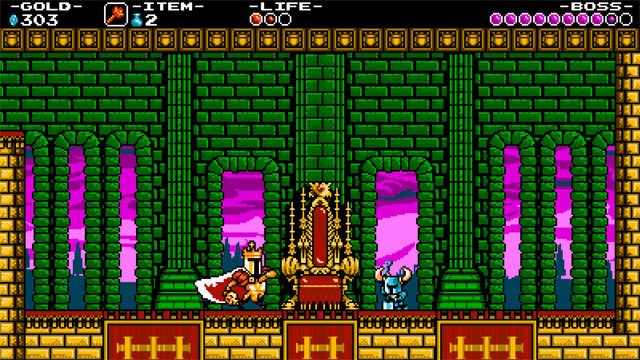 《铁锹骑士》似乎融合了Capcom的《唐老鸭大冒险》和《洛克人》,你可以用铁锹铲掉敌人头,也可以来一次急转身让炮弹打在敌人身上,而BOSS的选择则是如同《洛克人》般由玩家自由选择。游戏中还有各种地形阻碍你的前进。但是目前我们了解到的一个缺点是你在阶梯上无法攻击敌人,希望游戏正式发售时能作出修改。同时游戏有着大量的探索要素,玩家可以再游戏中挖掘到意想不到的秘密。