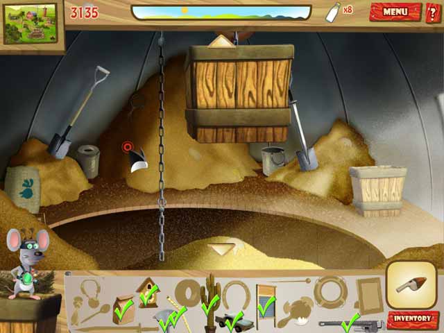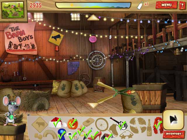 《牧场侦探牛》是个卡通风格的看图找物游戏,游戏的找物环节都是阴影找物,所以即使英语不好的玩家也可以轻松游戏了,不过游戏的里的物品设置的比较隐藏,难度还是有点高的,而且提示次数有限,只能通过奶瓶来增加次数。加入奥蒂斯奶牛和皮普,搜索牧场的6个场景,收集工具,躲避农民,找出它们的朋友吧。