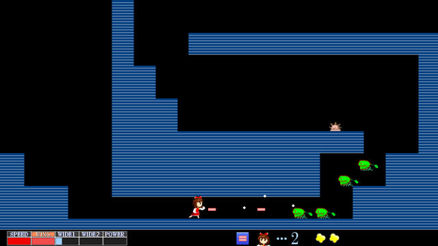 你可以在这个同人作品中找到许多经典游戏的影子,洛克人的boss选择挑战,以及某一袋魂斗罗可以吃箱子来变换子弹的设定,都被融合进了这个游戏之中。