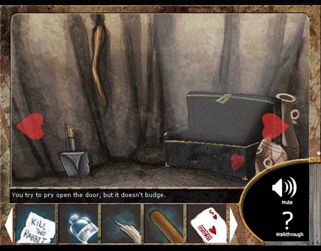 4:回到爱丽丝,点门。用石头削骨头,得到工具开门,但打开的是右侧箱子下的地道。