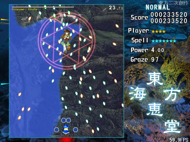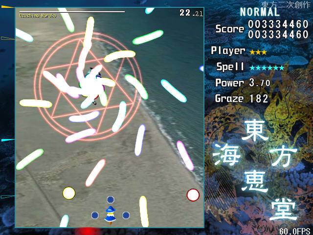 和以往的弹幕游戏一样,游戏的弹幕速度比较低,而且在玩家使用减速模式时,击中点将会清楚的显示出来,给玩家练习擦弹提供了很好的机会。