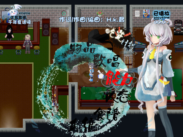 这是一款以百合穿越感人向剧情为主,以幽默吐槽风为辅的独立创新RPG游戏,在洛天依等V+中国的人设基础上进行的同人创作游戏。游戏创新点很多,设定了歌唱以及内心共鸣的新元素,并且废弃了一般RPG存在的装备和升级制,用新的游戏方式来换取平衡。该版本的游戏剧情可以到达第四章完结,游戏难度中等,已经过内测,应该不存在大的bug。