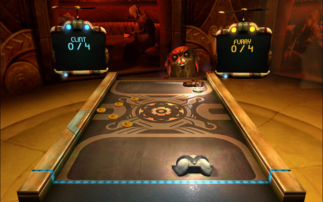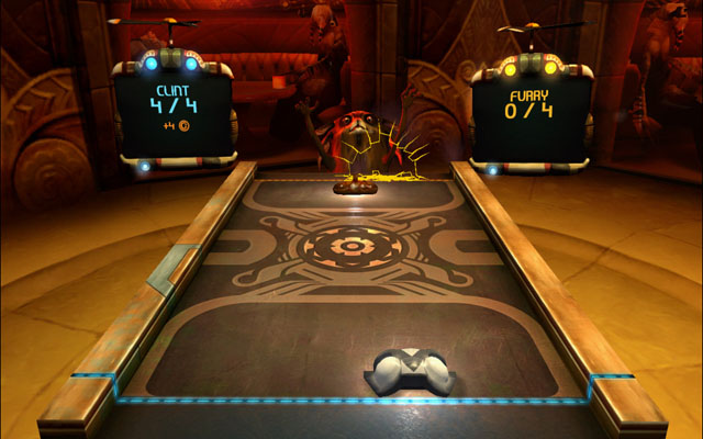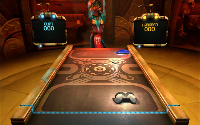 《桌面曲棍球》的风格有些类似于怪诞扑克夜2,在这里你可以和各种奇怪的生物对赌,当然赌的是曲棍球游戏,由于玩法上类似于冰球和打砖块,所以比较考验玩家的反应能力,这里你可以将赢得钱存至银行,每次游戏前都可以提取你的资金,随着你资金越来越多,你将可以解锁新关卡。