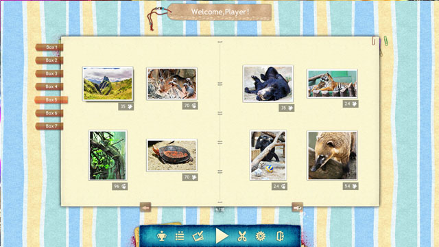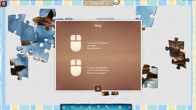 游戏包含的照片非常之多,同时每一幅照片被分割的片数也都不相同,有的只有十几块,有的则多达数百片,玩家可以自行选择喜欢的难度进行游戏,同时有些照片的右下角带有一个翻转的符号,代表这幅拼图中每一个小块方向都不一定是正确的,需要玩家用鼠标右键来翻转调整为正确的方向。