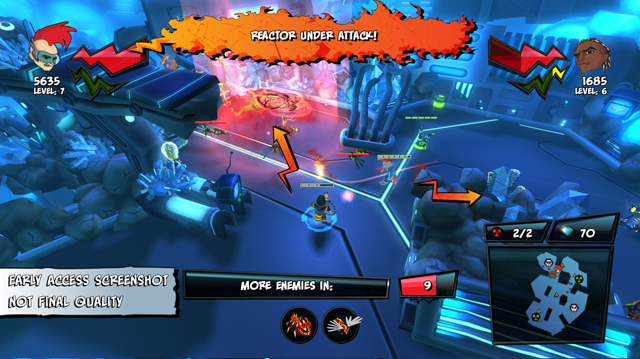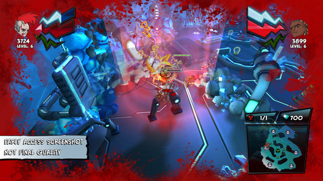 你要扮演两个特殊的操作工,以你的方式通过一个疯狂科学家的秘密小行星基地,你可以使用强大的近战方式或大规模杀伤武器来杀死他的军队,捍卫自己免受变异,或使用AI炮塔等防御措施来进行远程作战。