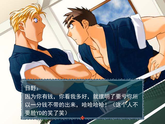对男生来说比较囧的游戏,养成一个健壮的男子实在有些重口味,不过要注意的是,相同的选项在不同的天数和不同的好感度之下会有不同的事件发生,也以此来产生不同的结局,有兴趣的玩家可以试试看。