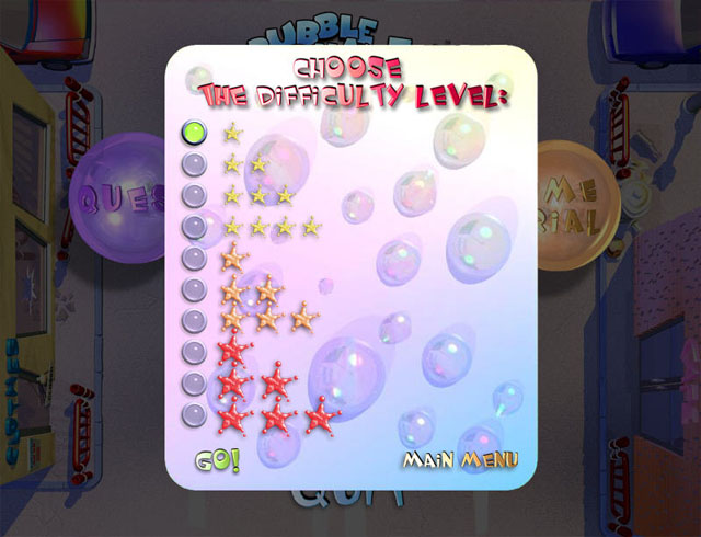 游戏的玩法与泡泡龙相同,将枪中的泡泡射到颜色相同的泡泡里消除即可,不过难度感觉比泡泡龙要大上不少,等级提升之后会加入许多的障碍,而且泡泡下降的速度也加快了许多,更还有3个难度可以选择,还是很有挑战性的。喜欢泡泡龙的玩家不妨来试试。